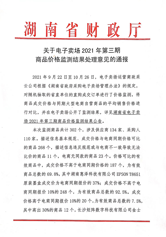关于电子卖场2021年第三期 商品价格监测结果处理意见的通报
