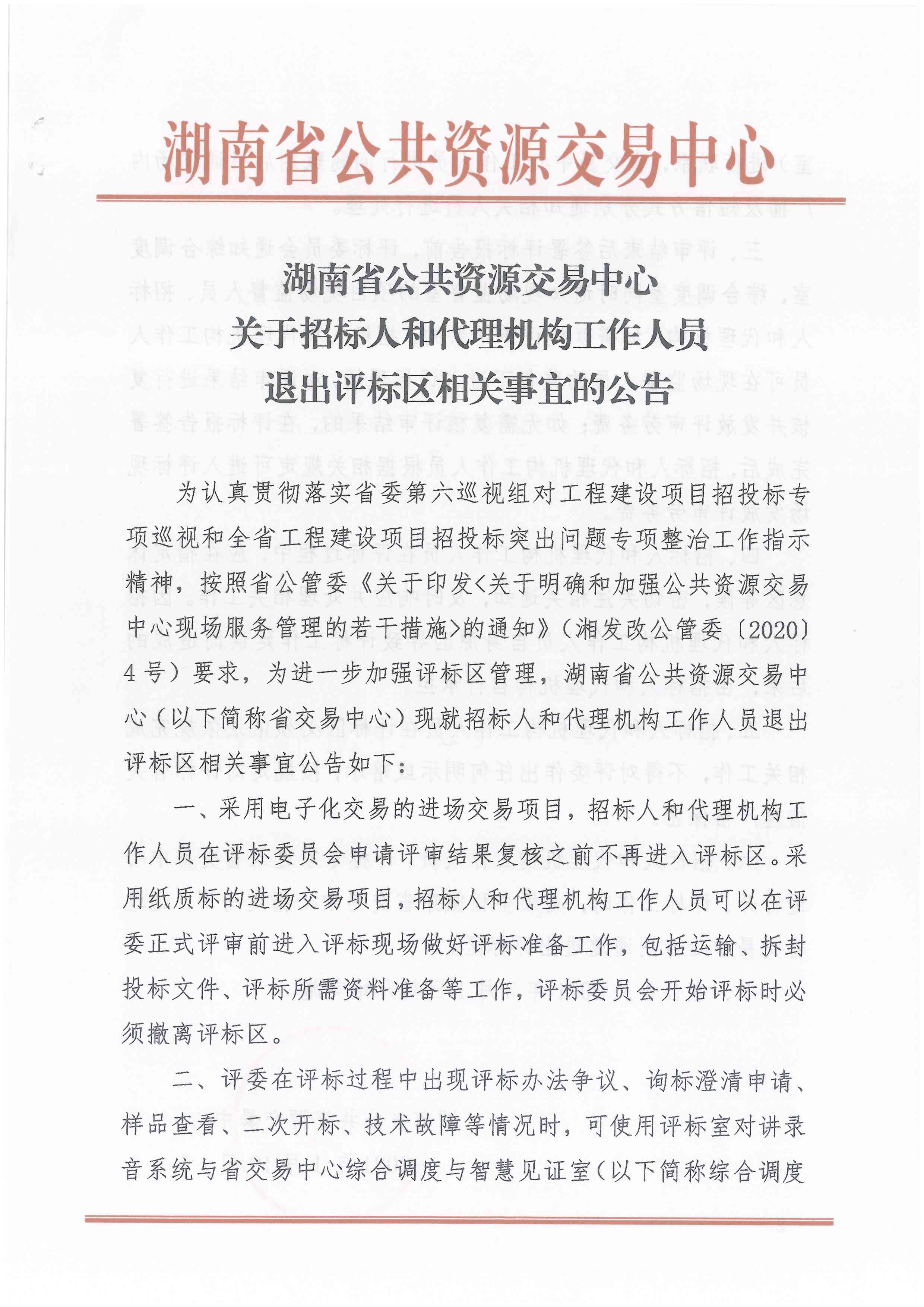 转发:关于招标人和代理机构工作人员退出评标区相关事宜的公告