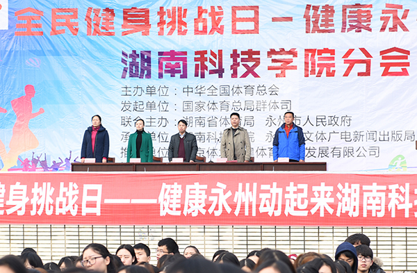 raybet官网副校长李常健、程智开,体育学院院长刘根发,市文体广新局副调研员赵红萍,零陵区文体新局党组副书记、副局长欧阳波夫等领导一同与师生们“舞动”起来,共话健康话题。