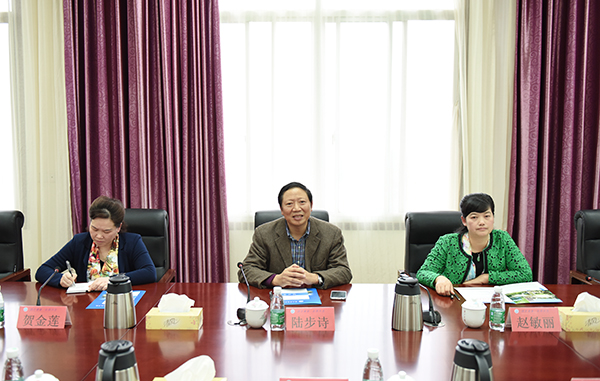 本网讯 11月2日下午,邵阳学院党委副书记陆步诗一行3人来校交流。校长曾宝成、校党委副书记唐艳明热情接待。