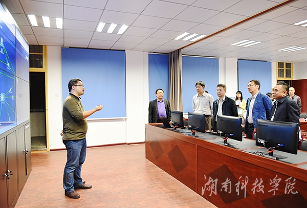 本网讯(记者 曾霏霏 实习记者 王淑娴 摄影 何帅文)10月19日下午,湖南省教育厅副巡视员郭建国一行四人来校督查教育信息化建设工作。校长曾宝成热情接待并陪同检查。