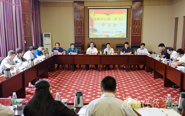 本网讯 (摄影 何帅文)9月1日,党委中心组(扩大)在行政办公楼八楼三会议室专题学习了习近平总书记在庆祝中国共产党成立95周年纪念大会上的讲话、省委组织部副部长胡奇在2016年全省普通高校领导干部暑期研讨班上的讲话、《中国共产党问责条例》、《湖南省普通高等学校党委领导下的校长负责制实施办法》和《雷竞技raybet官网版下载章程》等讲话和文件精神。校党委书记陈弘主持并讲话。