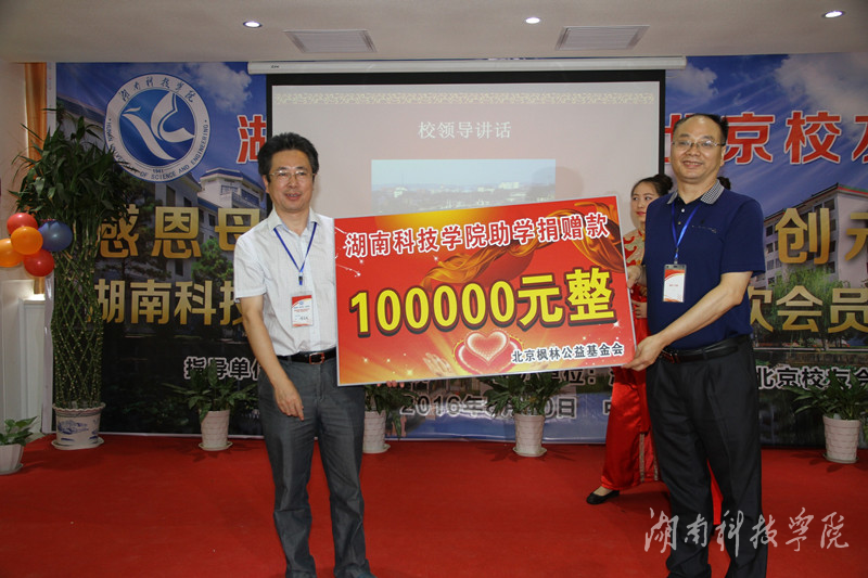第一届北京校友会会长、英语83级校友黄楚新对校友会的工作进行了总结与回顾。新任北京校友会会长、化学77级校友张亚红代表新一届理事会就校友会工作的具体开展进行了发言。会上还宣布由北京校友会发起的枫林基金会正式揭牌成立,为了表达感恩母校的主题,基金会捐款10万元资助母校贫困生。