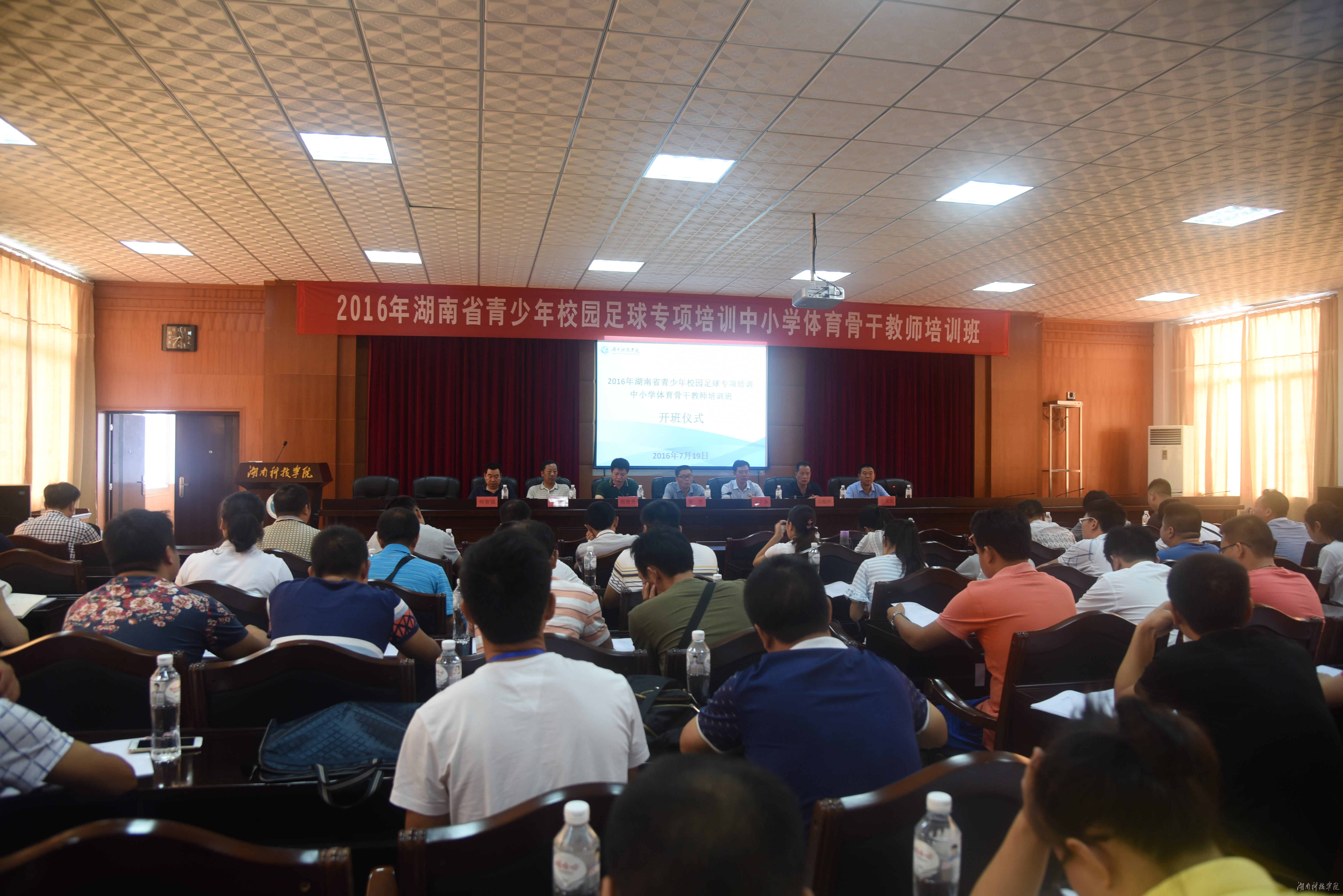本网讯(通讯员 刘国华) 7月19日,2016年湖南省青少年校园足球专项培训中小学体育骨干教师培训班在raybet官网开班。湖南省教育厅体卫艺处副处长贺照,副校长吴小林、程智开出席开班仪式。来自永州、郴州的60多名中小学体育骨干教师参加为期近半个月的校园足球专项培训。