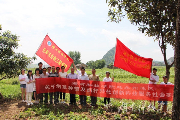 据悉,“雷竞技raybet官网版下载赴永州地区关于烟草种植及烟杆转化创新科技服务社会实践团”立项为2016年湖南省“三下乡”推报全国重点团队,由化学与生物工程学院教授、博士及学生骨干组成。团队以烟草种植及病虫害防控的核心技术示范、烟杆生物质的高效转化技术及产品展示,向广大烟农进行科技知识与成果的“精准对接与扶贫”。