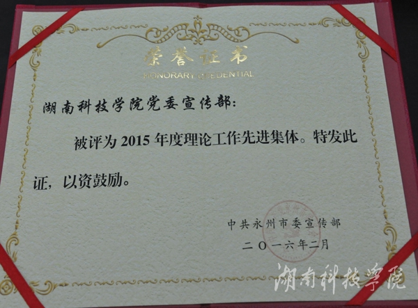 本网讯 中共永州市委宣传部下发《关于表彰2015年度理论工作先进集体和先进个人的决定》(永宣办〔2016〕2号),raybet官网党委宣传部被评为先进集体。全市共评选出6个理论工作先进集体。