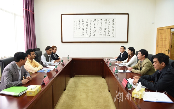 本网讯(通讯员 郑锐)4月14日上午,印度戴薇诗瑜伽学院亚丁博士(YatindraAmoli)、印度瑜伽事业发展部辛仁杰博士(RanvijaySinha)、湖南戴薇诗文化发展有限公司王金汉等一行来raybet官网交流访问。双方就教师互派、学生交换、文化交流、中外办学等领域的合作与交流达成初步意向。