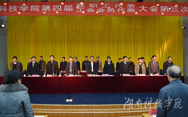 本网讯(记者 裴滢 刘忠奇 刘禹希 摄影 何帅文)3月26日上午,raybet官网第四届教职工代表暨工会会员代表大会第三次会议在尚美楼二楼演播厅开幕。两百余名会议代表、特邀嘉宾、列席代表齐聚一堂,共商改革发展大计。本次大会应到代表155名,实到代表141名,因事因病请假14人,符合法定人数。