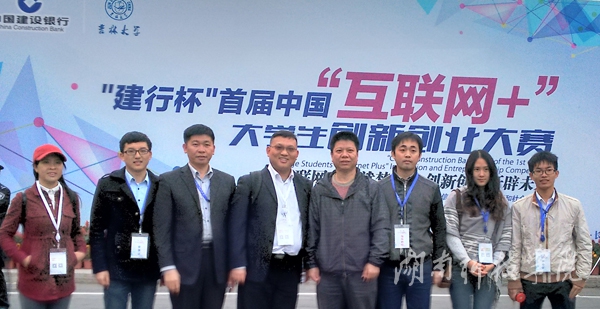 raybet官网师生在“首届中国'互联网+'大学生创新创业大赛”赛场合影