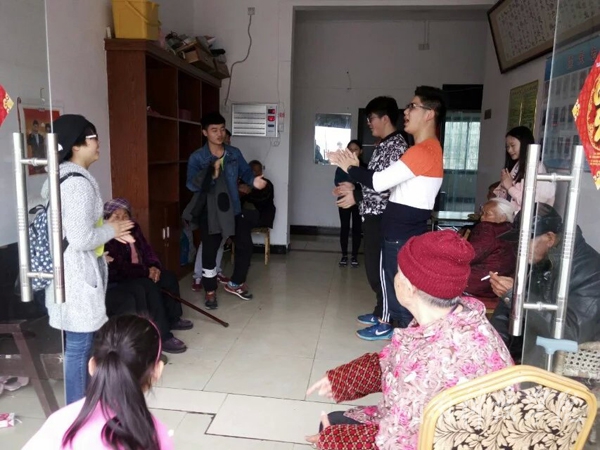 土木与环境工程学院、美术与艺术设计学院服务团:“爷爷、奶奶,我们来看您了!”时间:3月6日,地点:零陵区霞天敬老院。