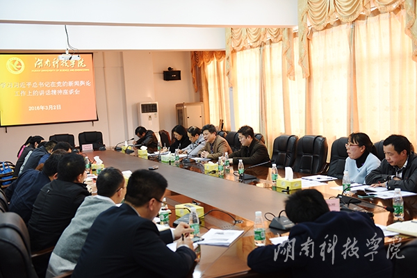 怎样推动讲话精神落实落地?怎样加强马克思主义新闻观教育?怎样加强新闻传播人才培养?在学习讨论中,大家认为,做好高校新闻工作,要坚定政治方向,积极改革创新,把新闻宣传工作与日常教育教学相结合,创新方式方法,加强新闻舆论监督引导,充分发挥微信、微博、QQ群等新媒体工具在新闻舆论中的作用。