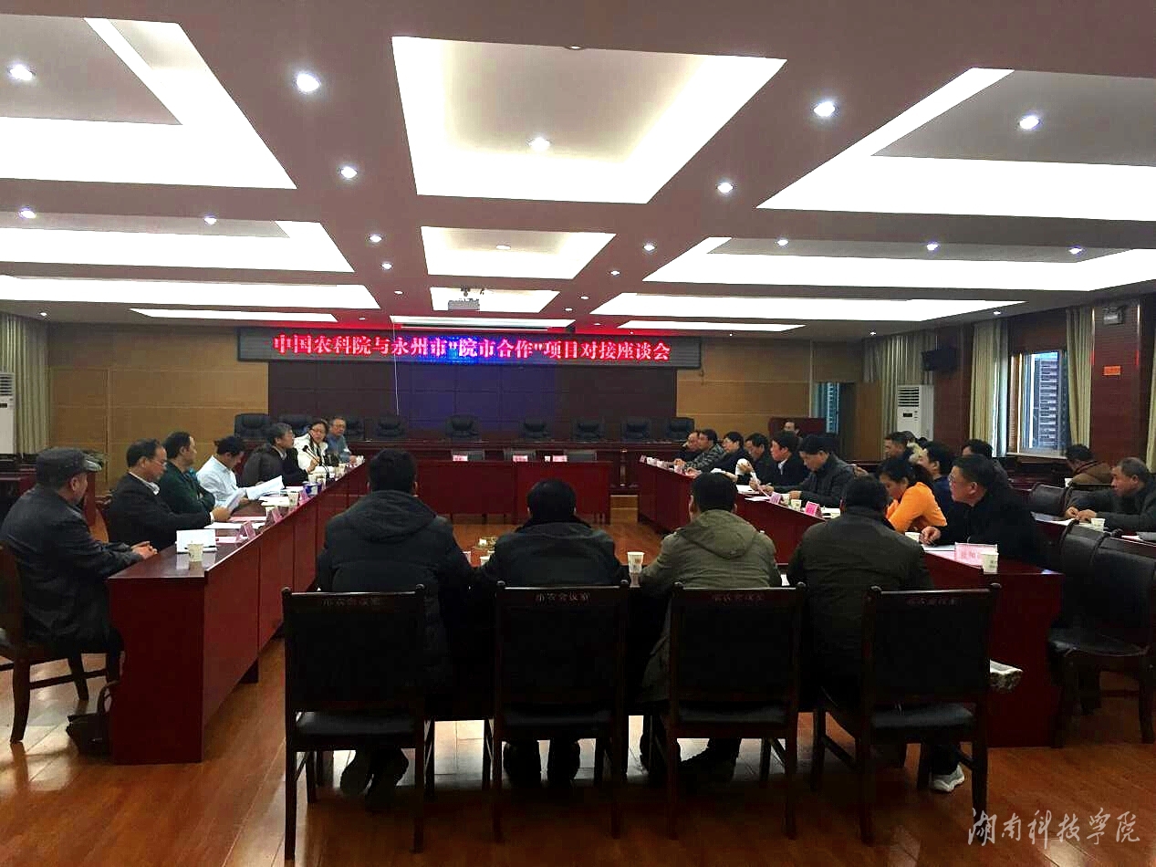本网讯(刘小文)1月25日,中国农科院与永州市院市合作项目对接会在永州市农业委员会举行,raybet官网作为项目成员单位参会。中国农科院植保所副所长文学、邱德文,成果转化处处长张东升,副研究员王秋霞博士,永州市政府副秘书长齐爱社,raybet官网副校长宋宏福、化学与生物工程学院院长何福林等出席。座谈会由永州市农业委主任周善生主持。