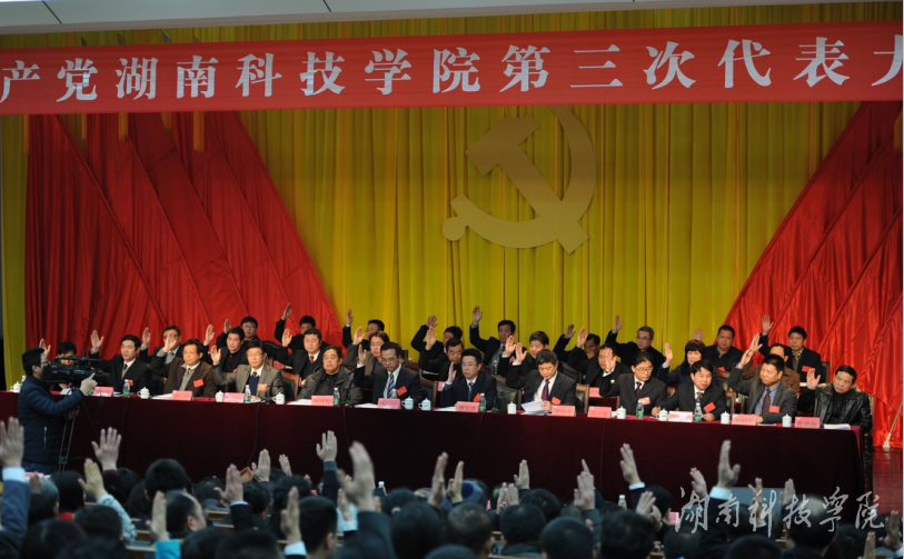 陈弘代表中国共产党雷竞技raybet官网版下载第二届委员会在大会上作了题为《保持战略定力 深化改革创新 为建设高水平应用型大学而努力奋斗》的工作报告。报告指出,第二次党代会以来,在省委、省委教育工委的坚强领导下,学校党委团结带领全校师生员工鼓干劲,振精神,解放思想,更新观念,以内涵建设为中心,以科学发展为要务,励精图治,攻坚克难,历经艰辛与曲折终于赢来新局面。数年奋斗,成绩巨大,成效明显。报告从八个方面回顾了第二次党代会以来学校的主要工作,一是从严治党管党,为推动全校各方面工作提供了强大动力;二是加强和改进思想政治工作,教职员工精神面貌发生了深刻变化;三是围绕学科与专业建设培育核心竞争力,综合实力明显增强;四是深化教育教学改革,人才培养质量稳步提高;五是对接社会需求,服务地方迈开新步伐;六是推进现代大学制度建设,为依法治校奠定了基础;七是重视师生员工切身利益,不断改善工作学习生活环境;八是加强校园文化建设,文化软实力持续提升。
