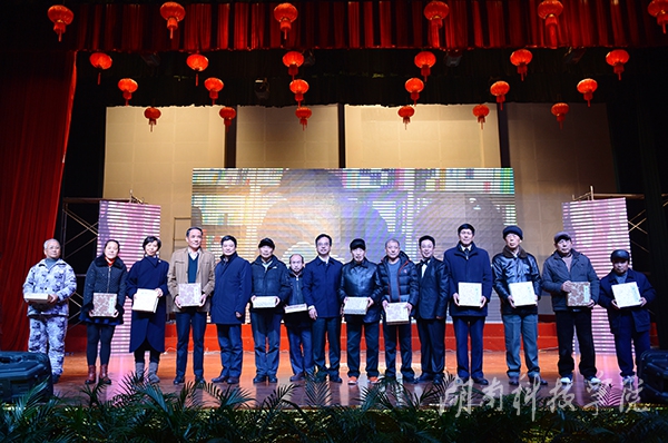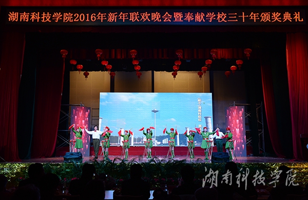 本网讯(记者 裴滢 实习记者 欧盼迪 摄影 何帅文)1月5日晚,体育馆内灯火通明,热闹非凡。学校在此隆重举行2016年新年联欢晚会暨奉献学校三十年颁奖典礼。全校教职员工、离退休老同志欢聚一堂,喜庆佳节。