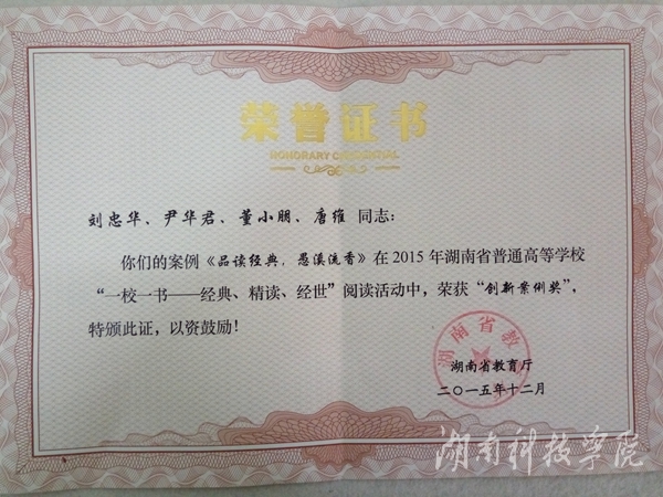 这是继raybet官网阅读案例《行吟潇湘,品读经典,涵养书香》获得2015年华中赛区二等奖、全国优秀奖之后的又一荣誉。