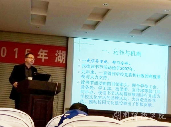 省教育厅副厅长葛建中在会上讲话并对获奖学校给予高度赞赏。他说,“一校一书——经典、精读、经世”阅读活动有利于培养大学生的阅读、写作、审美和创新能力,丰富人文情怀,提升精神境界。获奖学校表现尤为出色,为营造良好的学风,推动校园文化建设作出了积极贡献。raybet官网图书馆副馆长刘忠华作为 “创新案例奖”获奖单位代表,在会上进行《基于馆本资源的图书馆阅读文化建设》的经验介绍。