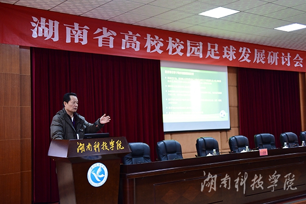 本网讯 12月18日至19日,高校校园足球发展研讨会在raybet官网举行。与会专家围绕高校校园足球发展及充分发挥足球育人功能、培养全面发展人才展开深入研讨交流。湖南省教育厅副巡视员郭建国及校长曾宝成,副校长宋宏福、程智开等出席论坛开幕式。论坛吸引了来自省内各高校的体育学院院长和专家学者40余人出席。校党委书记陈弘专门撰文《足球与教育》,阐述足球与教育的关系,提出“文明学生的精神,强健学生的体魄,是教育的本义,两者不可偏废。”