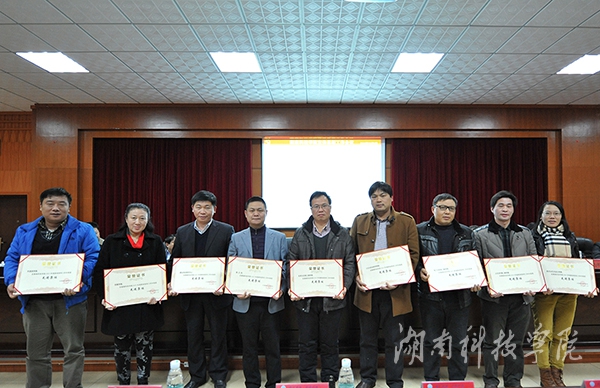 全体校领导为受表彰先进集体和个人颁奖。