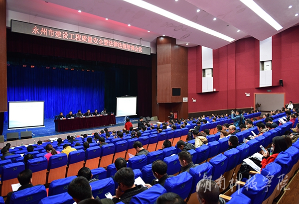 本网讯(通讯员 廖群峰 摄影 何帅文)11月27日至28日,永州市建设工程质量、安全及法律法规培训会议在raybet官网举行。永州市副市长张常明出席,副校长郑山明出席并致辞,永州市住房和城乡规划建设局党组成员、副局长蒋志刚主持会议。共有来自永州市各建筑部门及企业的450名代表参会。