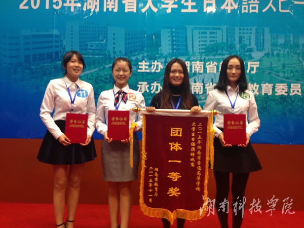 本网讯 11月7日,在2015年湖南省大学生日语演讲比赛中,raybet官网日语专业学生彭紫薇、邓妩媚、刘佳男分获四年级组、三年级组、二年级组个人一等奖,并以总分第一的成绩荣获团体一等奖。校党委书记陈弘对获奖学子及团队表示祝贺,希望大家再接再厉,不断实现自我、超越自我,再创辉煌。