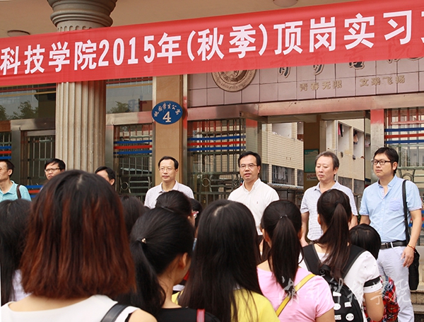陈弘表达了对同学们的深切关怀和殷切嘱咐。他说,实习是大学生涯的重要一课,同学们要珍惜此次机会,在实习中展现科院学子“德才兼备”的优秀品质和精神风貌。他向全体实习生提出四点希望,一是要以身作则,充分发挥教师的示范引领作用;二是要懂得学无止境的道理,把坚持学习作为终身之要;三是要坚持用爱育人,做一名心怀大爱,道德高尚的好老师;四是满腔热情投入,敢于担当,为实现民族振兴而努力奋斗。