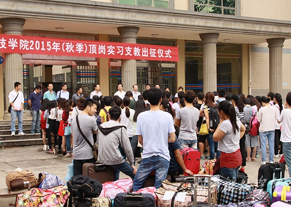 本网讯(记者 向赛男 吴亚 摄影 钟刚)9月14日上午,赴宁远县参加顶岗实习的108名学生带着校党委书记陈弘的殷切嘱咐,满怀信心地踏上顶岗实习的征程。