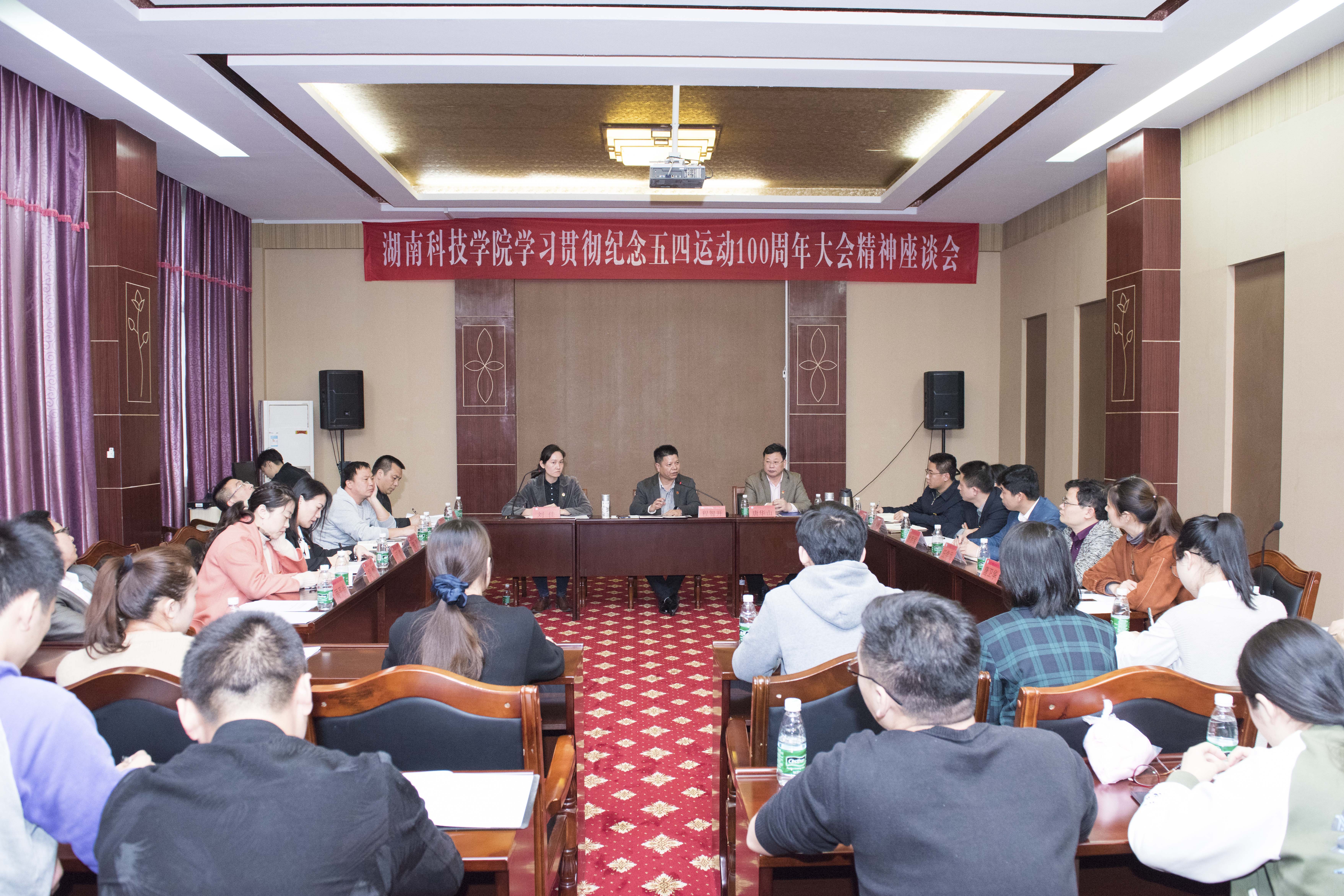 本网讯 5月7日下午,学校举行学习贯彻习近平总书记在纪念五四运动100周年大会上的重要讲话精神座谈会。副校长程智开,学工部、团委负责人以及各学院党总支副书记、团委书记、部分辅导员和团员青年代表参加座谈。会议由程智开主持。
