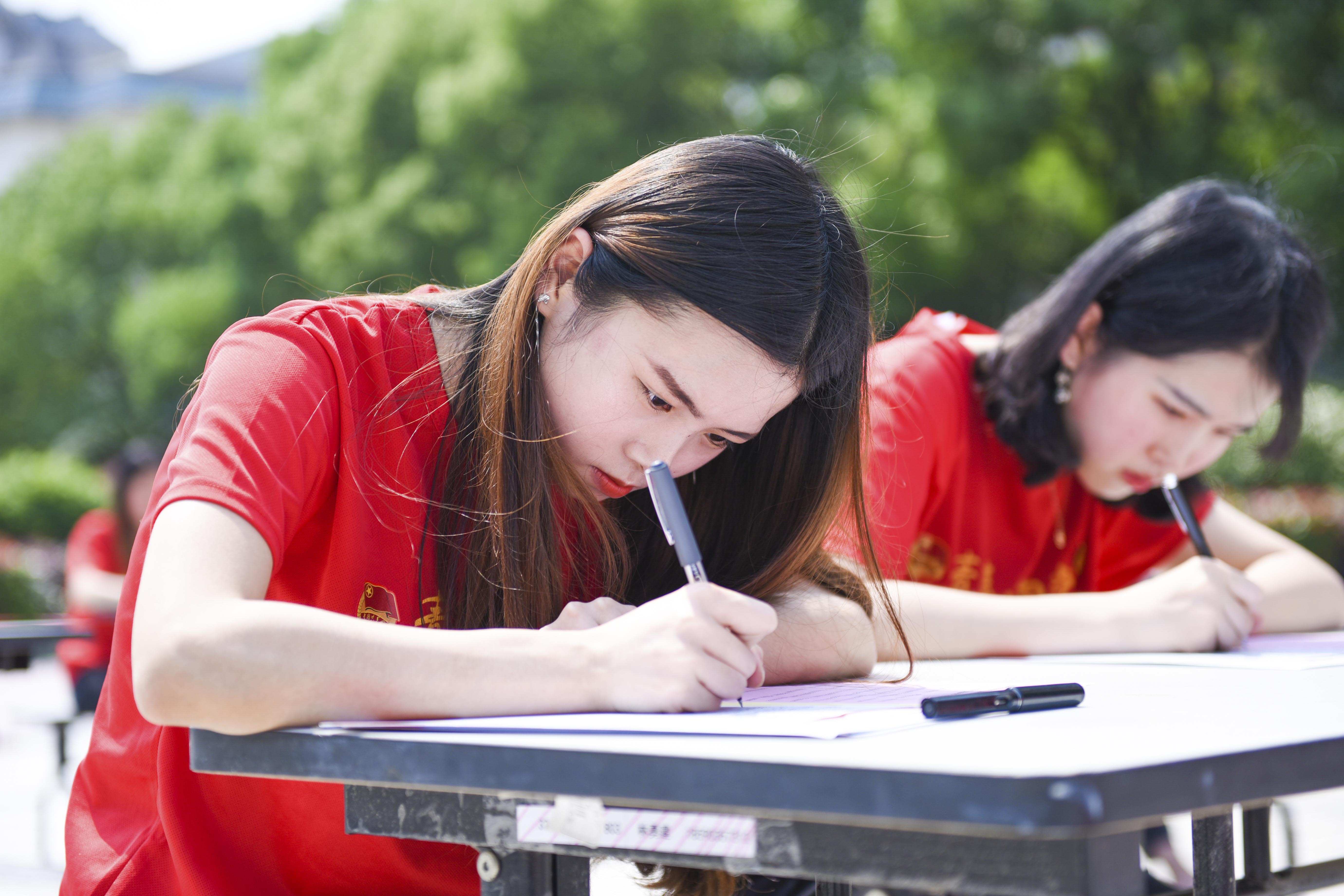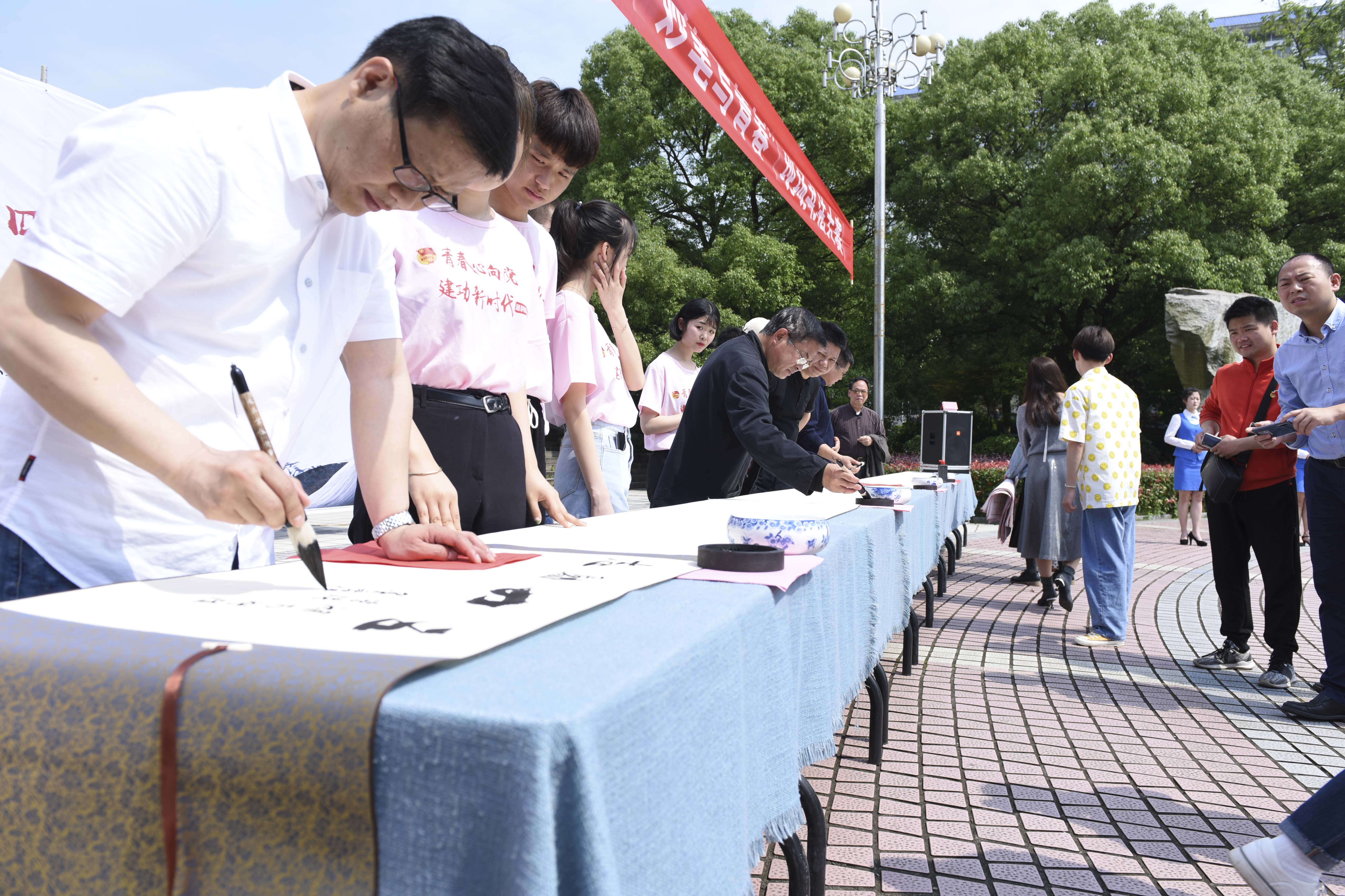 本网讯 5月11日,伴随着悠扬、古典的音乐,raybet官网 “墨香传五四,妙笔写青春"现场书法大赛在文化广场举行,大赛吸引了近百余名师生同场竞技。副校长程智开,中国书法协会会员、湖南省书法家协会理事、湖南省书法家协会行书委员会秘书长刘建平,永州市书法家协会第一届主席黎笃田,永州市书法协会副主席宋运清,raybet官网书法研究所所长唐幼铎参加活动。