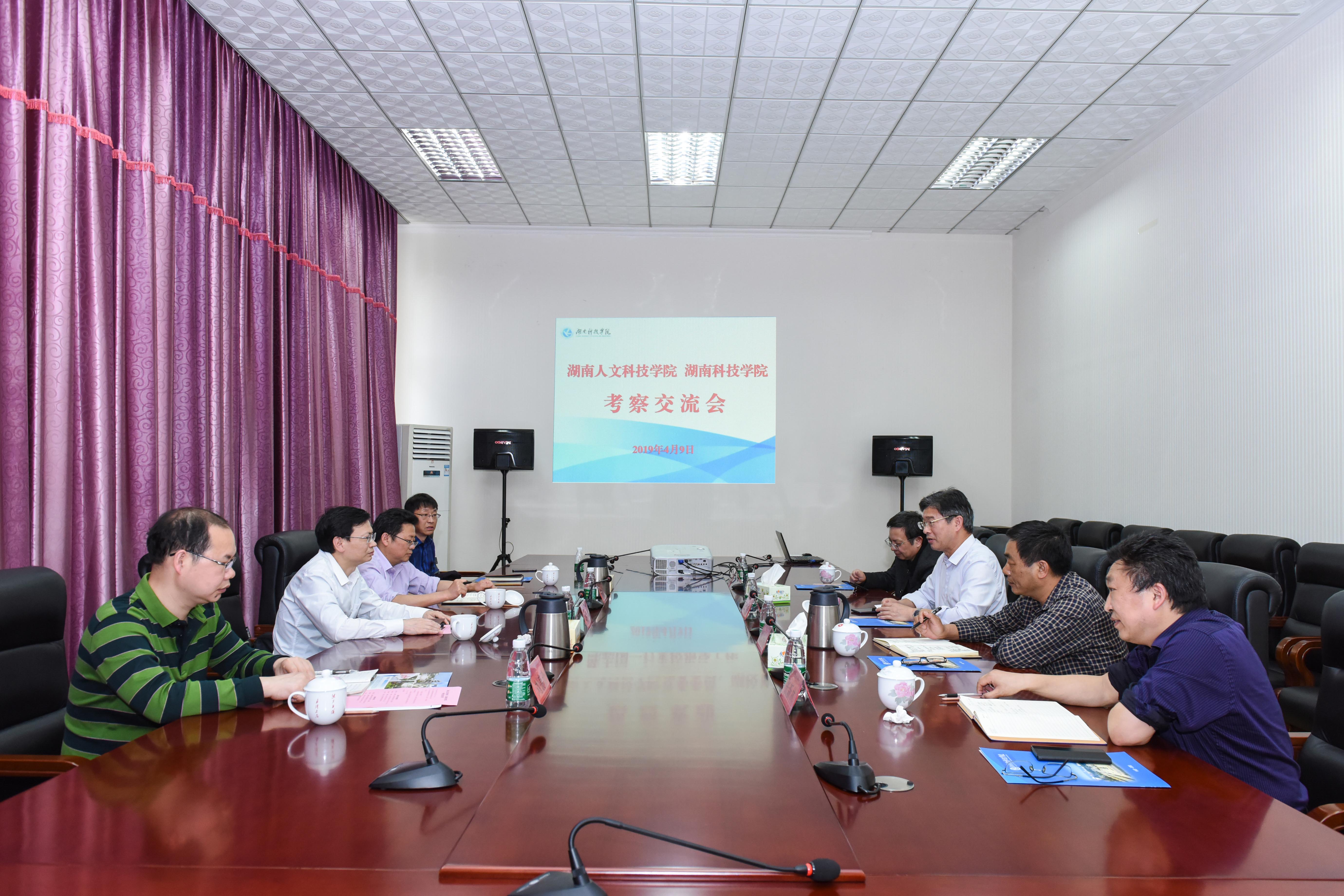 本网讯 4月9日上午,湖南人文科技学院副校长陈志国一行来校交流。副校长宋宏福及相关部门负责人参加交流会。