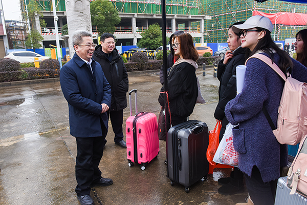 本网讯 “回家的路上一定要注意安全,途中不要逗留,及时回家,不要让爸爸妈妈担心。”1月15日,党委书记、校长曾宝成来到学生离校免费乘车点看望离校学生,叮嘱他们注意安全,并祝福同学们过一个欢快的春节。