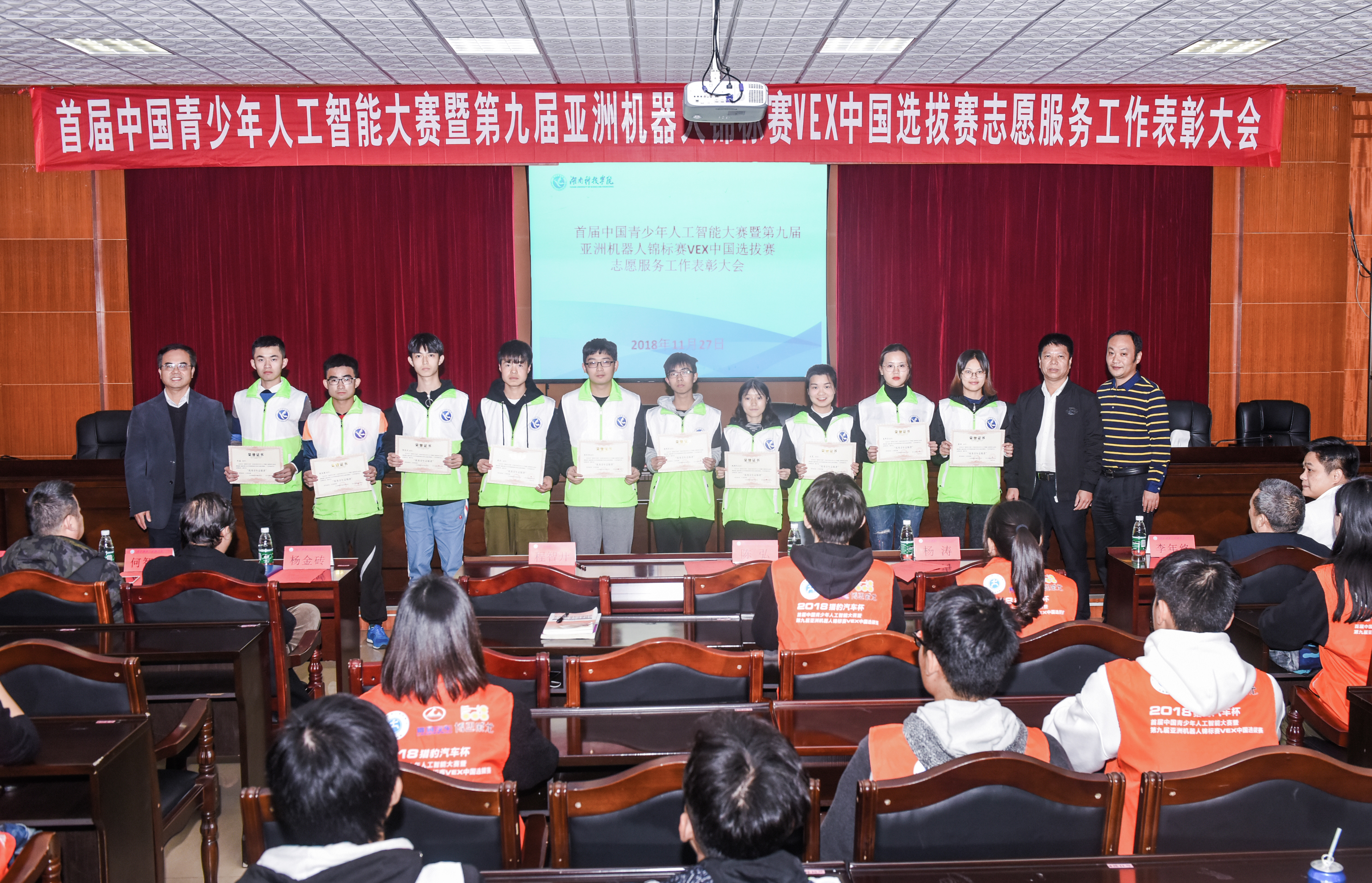 本网讯 11月27日,学校举行2018“猎豹汽车杯”首届中国青少年人工智能大赛暨第九届亚洲机器人锦标赛VEX中国选拔赛志愿服务工作表彰大会。校党委书记陈弘,副校长程智开,校党委委员、宣传部长杨涛,科技处、后勤服务总公司、保卫处、团委、体育学院负责人及全体志愿者参加。