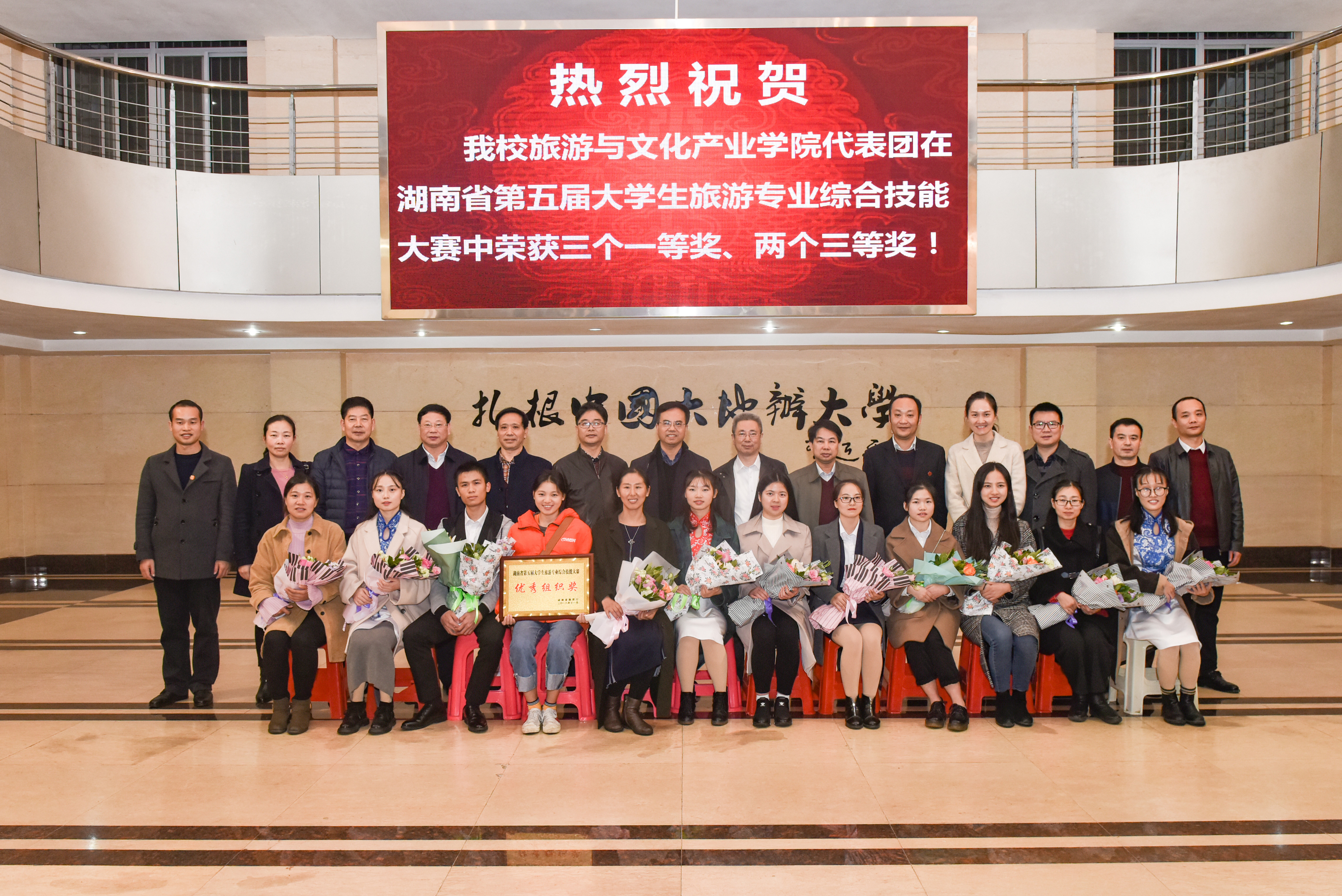 本次比赛由湖南省教育厅主办,湖南省旅游学会旅游教育专业委员会、长沙新华联铜官窑国际文化旅游开发有限公司协办。全省29所院校,共计131支队伍参赛,其中27所院校66支队伍进入复赛。raybet官网旅游与文化产业学院共派出5支队伍参赛,最终3支参赛队伍获一等奖、2支参赛队伍获三等奖,并以团体总分第一的优异成绩获优秀组织奖,其中“以今朝科技 兴千年风骨”团队总决赛分数位居全省并列第一名,创历史最好成绩。