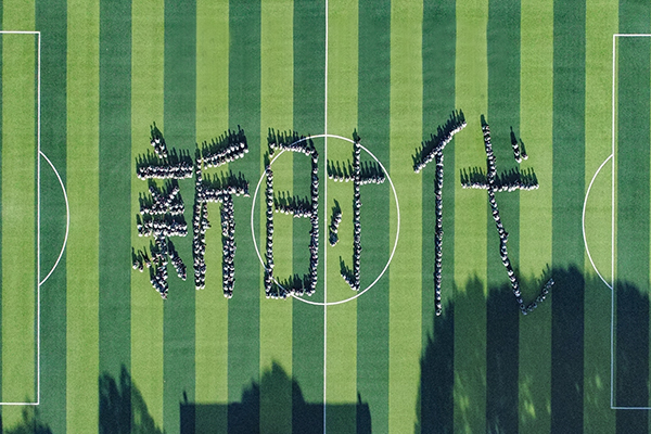 本网讯 为庆祝祖国改革开放40周年,近日,raybet官网500余名学生在足球场摆出独特姿势“新时代”字样、精拍创意美图,为祖国献上一份别样的礼物。此次献礼活动由校党委宣传部组织策划。活动体现了学校对祖国“筑梦新时代”的真挚祝福。