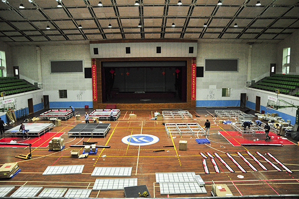 悬挂欢迎横幅、搭建展棚、翻新场所、疏导交通……校园里随处可见工作人员忙碌的身影。尽管阴雨连绵,但他们仍坚守在自己的岗位上,只为以最好的面貌迎接此次大赛。