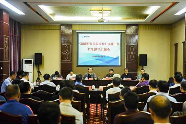 在10月8日召开的汇报会上,督导组听取了校长曾宝成关于《雷竞技raybet官网版下载章程》实施工作情况的汇报,会议由党委副书记唐艳明主持。刘湘溶对本次督导的意义、要求、任务等作了说明。本次专项督导内容为章程实施的组织领导情况、本校章程内容掌握程度与章程实施满意情况、章程主要规定落实及配套制度建设情况等。