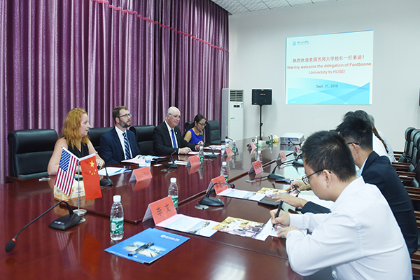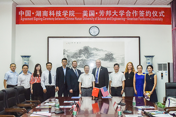 交流会上,两校就近年来的交流合作情况做了小结,并就进一步加强教师学生交流与教育合作进行了商讨。经商讨,两校校长代表双方学校签订了联合培养计算机专业硕士的“3+1+1”项目合作协议。下午,芳邦大学代表团一行与电子与信息工程学院和美术与艺术设计学院就“3+1+1”联合培养硕士项目在课程设置与安排、教师教学安排、赴美学习相关费用等具体事项开展进行对接,并参观了两个学院教育教学相关场地和仪器设备。晚上,芳邦大学代表团一行出席电子与信息工程学院举办的赴美学习宣讲会,会上代表团介绍了芳邦大学办学情况,并现场解答了学生们的一些疑惑。曾赴该校进行研修的电子与信息工程学院顾思思老师做了在美学习的感受分享。