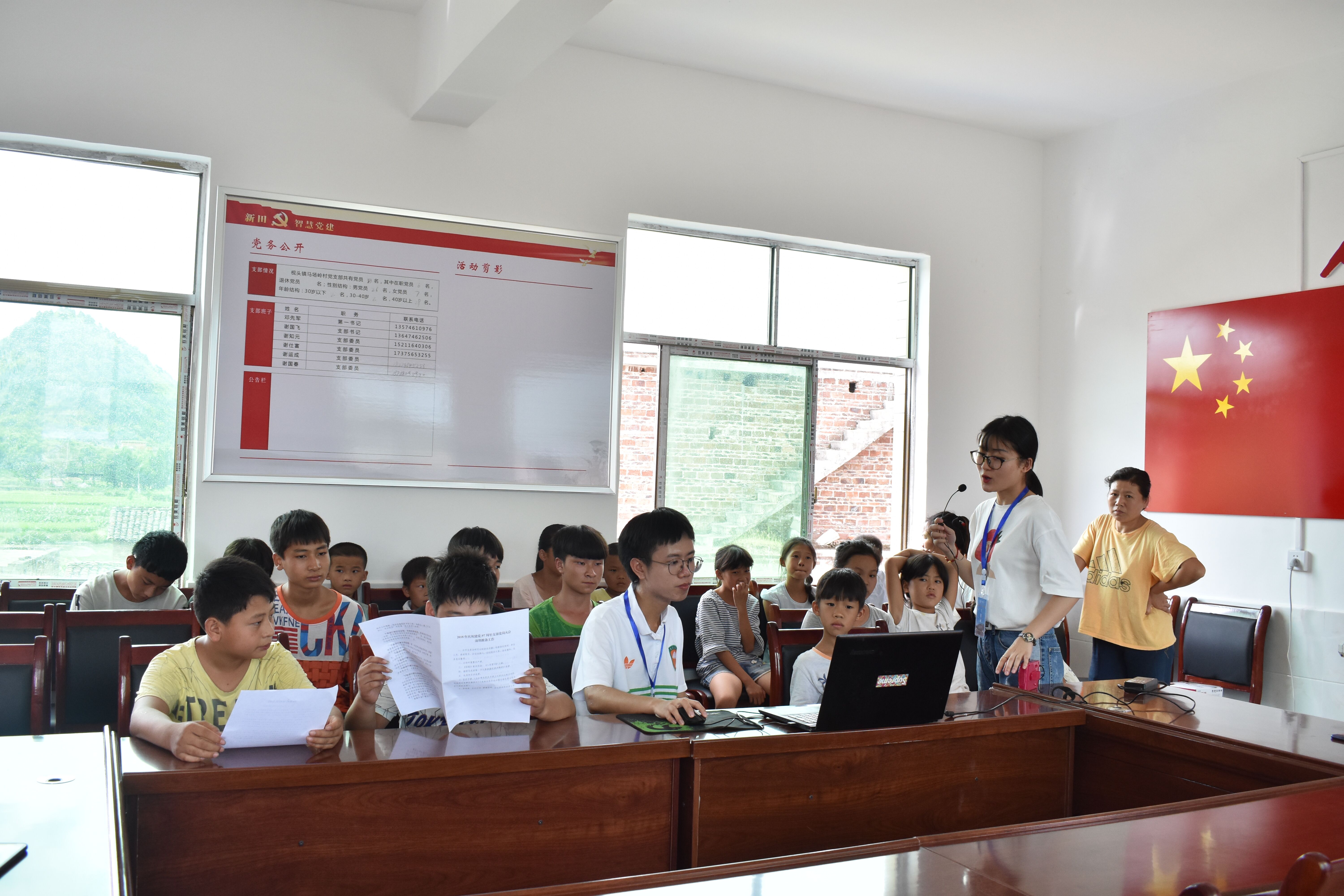 此次活动以“十九大理论宣讲与青少年教育关爱”为主题。队员们分组深入该村一百余户贫困家庭分发宣传资料、进行调研和访谈,了解他们的生活生产以及该村扶贫政策的落实情况等。队员们结合专业理论知识,以面对面方式,对美丽乡村、精准扶贫、乡村振兴等相关政策进行宣讲,提升村民对相关政策的理解,帮助他们充分利用国家惠民政策、增强自主脱贫能力。同时,队员们还通过多媒体教学,以案例讲解、游戏互动等形式对该村留守儿童进行安全教育和素质拓展,助力青少年健康成长、自立自强。