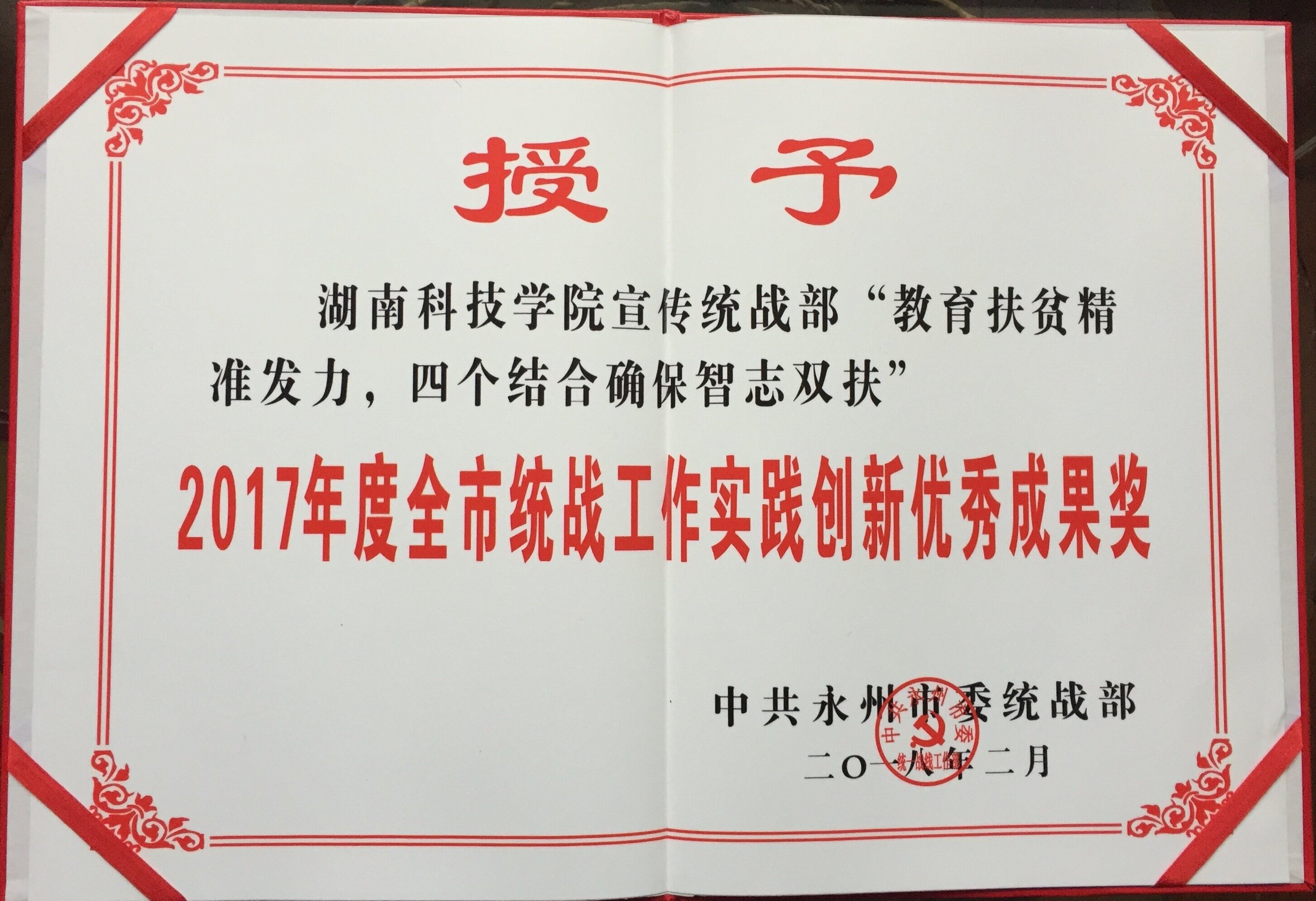 本网讯 2月27日,中共永州市委将纪委、党办、组织、宣传、统战、政法等党务部门的工作会议合并召开。市委书记、市人大常委会主任李晖出席并讲话,市委副书记、市长赵应云主持会议,市委副书记、市委政法委书记唐湘林宣读表彰通报。raybet官网荣获2017年度全市统战工作先进单位称号,全市统战工作首次纳入市委考核,raybet官网首次获此殊荣。下午,全市统战部长会议在南华大酒店召开。raybet官网宣传统战部“教育扶贫进准发力,四个结合确保智志双扶”获2017年度全市统战工作实践创新优秀成果奖。
