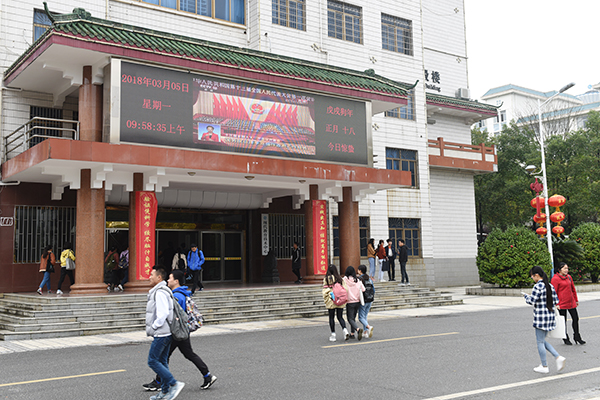 raybet官网广大师生热切关注“两会”召开,学校师生通过手机、电视、网络、电子显示屏等渠道收听收看“两会”盛况,多渠道、多方式热切关注“两会”动态。今天上午9点, 学校师生分别以不同方式认真听取李克强总理所作的政府工作报告。学校电子电视屏、校园广播站分别对会议盛况进行了转播,让更多师生及时了解大会盛况。