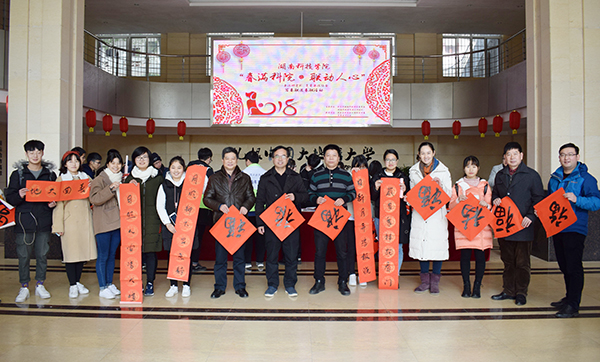 本网讯 1月11日中午,学校开展的“春满科院 联动人心”写春联送春联活动现场人流如织、喜气洋洋,校党委书记陈弘、校党委副书记唐艳明、副校长程智开、工会主席陈仲庚等饶有兴致地来到活动现场,程智开、欧小松、唐幼铎、曹先兵、李国家、夏三鳌、谷显明等书法研究所成员及2017年现场书法大赛获奖学生现场挥毫写联,为全校师生送上了新年祝福。