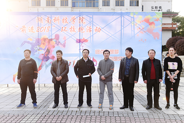 本网讯 青春起跑在潇湘,满怀憧憬新征程。12月26日,600余名师生精神抖擞齐聚在文化广场,在新年即将到来之际,以“环校跑”这一特殊的形式迎接2018年的到来。党委书记陈弘宣布“前进2018”新年环校跑活动正式开始,校党委副书记唐艳明、副校长吴小林参加活动,吴小林还与师生一同环跑全程。
