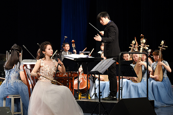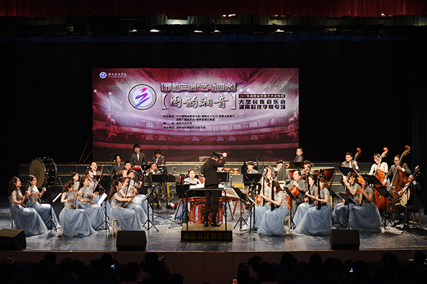 本次音乐会吸引了来自全校的师生观看,演出共有十个节目,演绎了中国不同地域的特色民族风情,为全场献上一场精彩的视听盛宴。音乐会在名曲《庆典序曲》中拉开序幕。随后,表现蒙古自然风情的《风之歌》带领观众领略蒙古草原风土人情,一曲以永州九嶷山为灵感创作的《九嶷神韵》融入悠悠笛音,将永州九嶷山的巍峨展露无遗,江苏民歌改编的《茉莉花》让观众不禁沉醉在江南水乡的柔情之中,《红楼梦组曲》一响,现场的观众们莫不跟着轻声哼唱,一曲《浏阳河》则让现场观众徜徉在浏阳河的艺术世界中,莫娟娟演唱的歌曲《长鼓敲起来》《越来越好》使现场气氛达到高潮,掌声不绝于耳。音乐会在唯美动听的《花好月圆》中落下帷幕,得到了现场观众的经久不息的热烈掌声。
