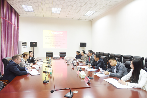 本网讯 10月12日上午,raybet官网与白俄罗斯国立文化艺术大学就两校教育领域合作进行洽谈并签订合作协议,两校结为友好学校。校长曾宝成、副校长宋宏福出席洽谈会及协议签字仪式。洽谈会由国际交流与合作处处长郑际根主持。