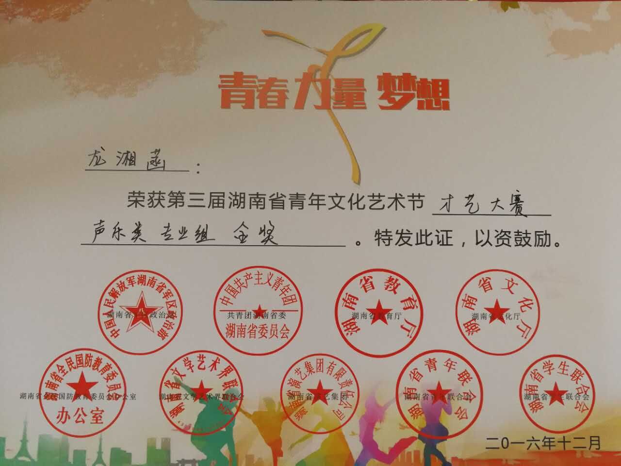 据悉,第三届湖南省青年文化艺术节由省军区政治部、团省委、省教育厅等联合举办,此届艺术节的主题为“青春·力量·梦想”,旨在引导青年自觉践行社会主义核心价值观,促进社会主义文化大发展大繁荣,进一步提高青年文化素养,选拔优秀青年艺术人才。