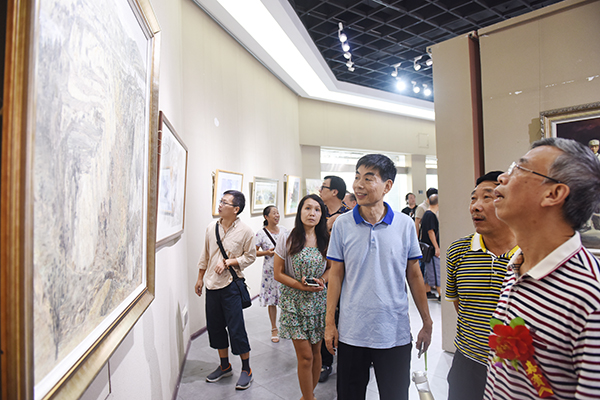 国画意蕴优美,给人一种身临其境之感;油画色彩丰富,写实逼真,立体质感强;而版画独特的刀味和木味;水彩画的轻快明亮,更是都给观者留下了深刻的印象,带给观者无尽的美感和震撼。大家伫立在画作前,欣赏艺术家们带来的画作并不时与周围参展人员交流,更有观者沉醉于画中,伫立画前,久久不离。