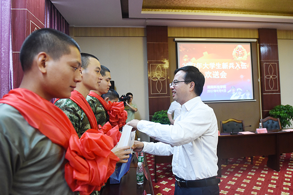 本网讯 9月9日上午,学校举行大学生新兵入伍欢送会,校党委书记陈弘、校长曾宝成出席,仪式由副校长程智开主持。