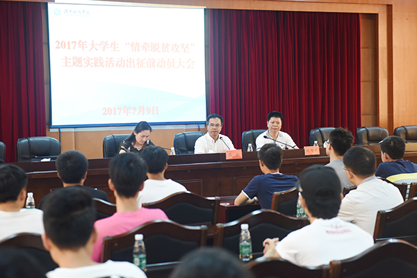 7月9日,raybet官网召开了“情牵脱贫攻坚”主题实践活动动员大会,党委书记陈弘、副校长程智开及参加实践活动的全体师生参加大会。陈弘要求大家把思想和行动统一到省委、省政府的决策部署上来,要带着时代责任感和对贫困群众的特殊感情,以实际行动为贫困地区、贫困群众造福。他勉励同学们积极主动投身其中,用智慧、力量和热情助力精准扶贫,在社会实践大课堂中成长成才。他要求各实践团队要自觉遵守纪律、听从指挥,吃苦耐劳、甘于奉献,把政策吃透、问题找准,确保主题实践活动各项任务顺利圆满完成。
