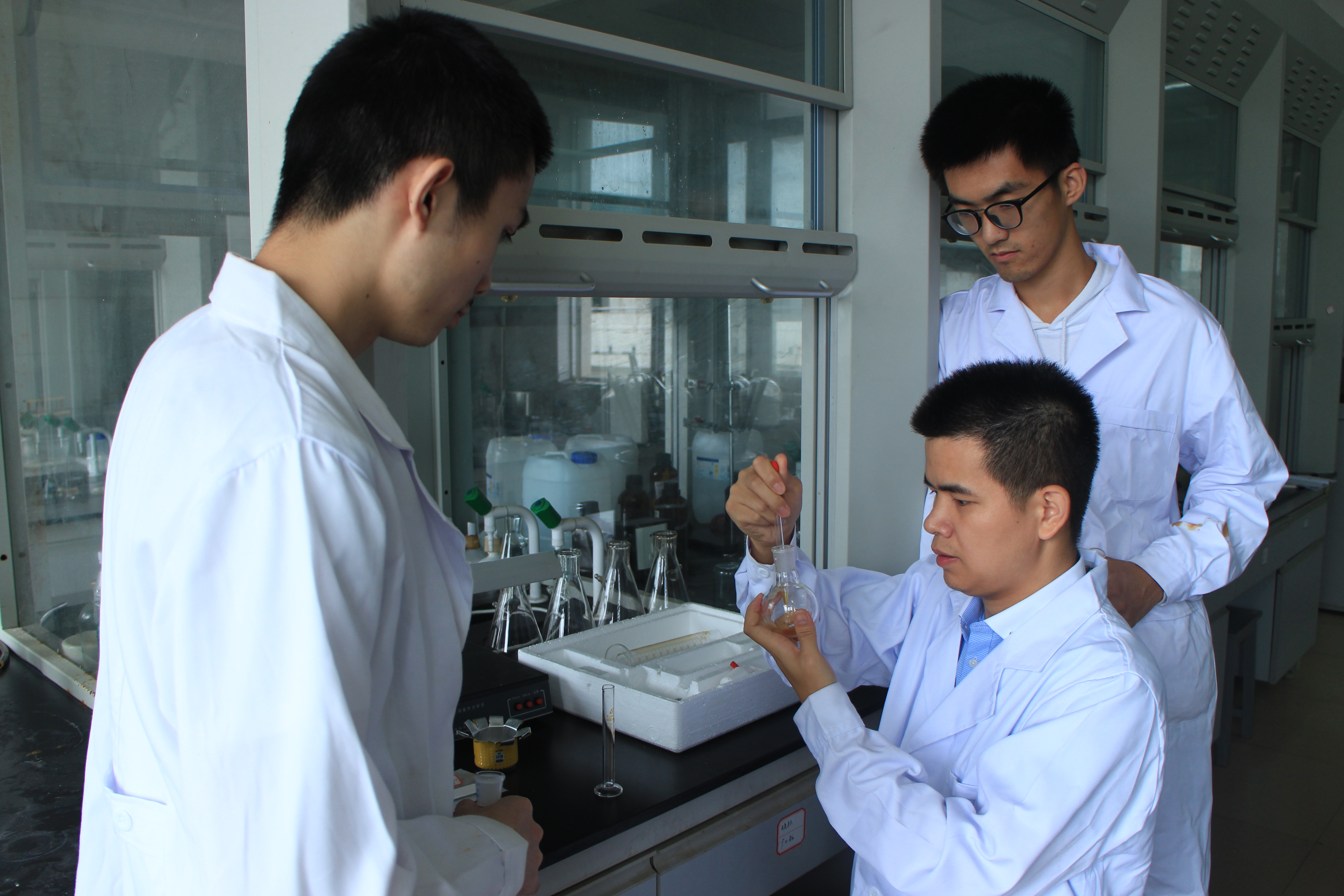 “做科研跟做人一样需要‘顶天立地’,‘顶天’说的是科研要达到顶级的创新,‘立地’需要科研能够接地气,是为普通大众服务的。做科研讲究创新,一味的跟着别人的思路去做永远都无法取得重大突破。”在科学研究的过程中,曾飞有着自己明确的理念。也正因为近10年来对专业的不懈追求,对材料化学的持久探索,曾飞取得的诸多成绩已成为必然。来校工作的第一年,他的研究项目《基于三蝶烯结构共轭聚合物的合成及其在离子传感中的应用》便获得了国家自然科学基金项目资助,同时主持湖南省自然科学基金项目一项,湖南省重点实验室开放课题一项,指导学生获得湖南省大学生研究性学习和创新性实验计划项目一项;在国内外权威期刊上发表科研论文15篇,其中SCI论文10篇;参与出版学术专著一部;被祁阳宏泰铝业有限公司聘为技术顾问,并帮助该公司申请了湖南省祁阳宏泰铝业有限公司企业技术中心并获立项。