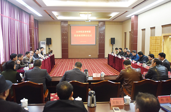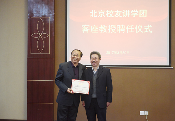 本网讯 3月30日上午,学校举行北京校友讲学团客座教授受聘仪式。校长曾宝成及校领导唐艳明、宋宏福、彭立威、郑山明、李常健、吴小林、程智开出席并为受聘校友颁发证书。