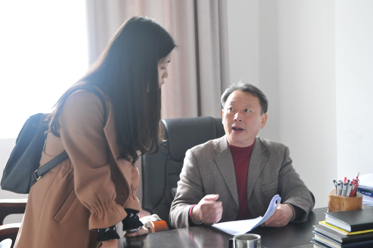 日常事务繁忙,欧院长抽出休息时间指导学生论文,平日里和善的欧院长认真工作时却很严肃。